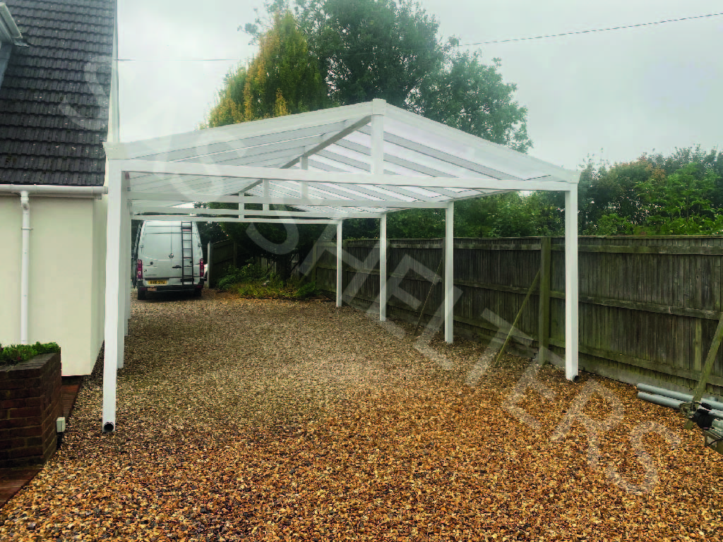 Our gable roof carport also has an Integral gutter with the option of glass or polycarbonate.